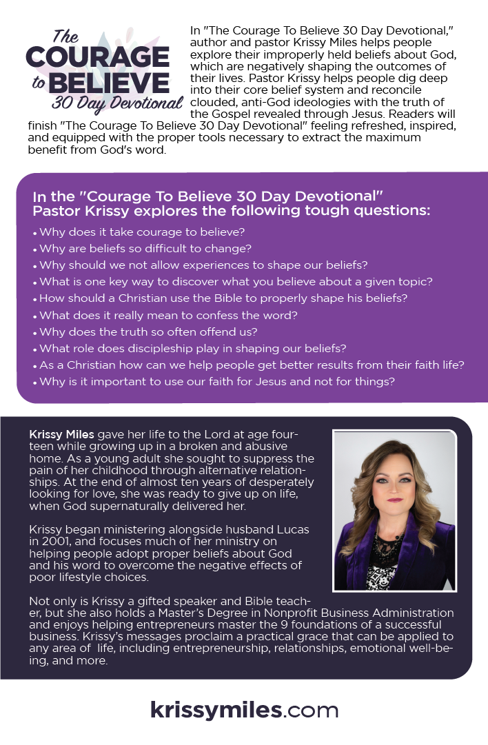 The Courage to Believe 30 Day Journal will walk you step by step through the process of evaluating what's at the core of your belief-system, so that you can either remove the patterns that aren't giving you life, or double-down on thoughts that will catapult you to the next level.